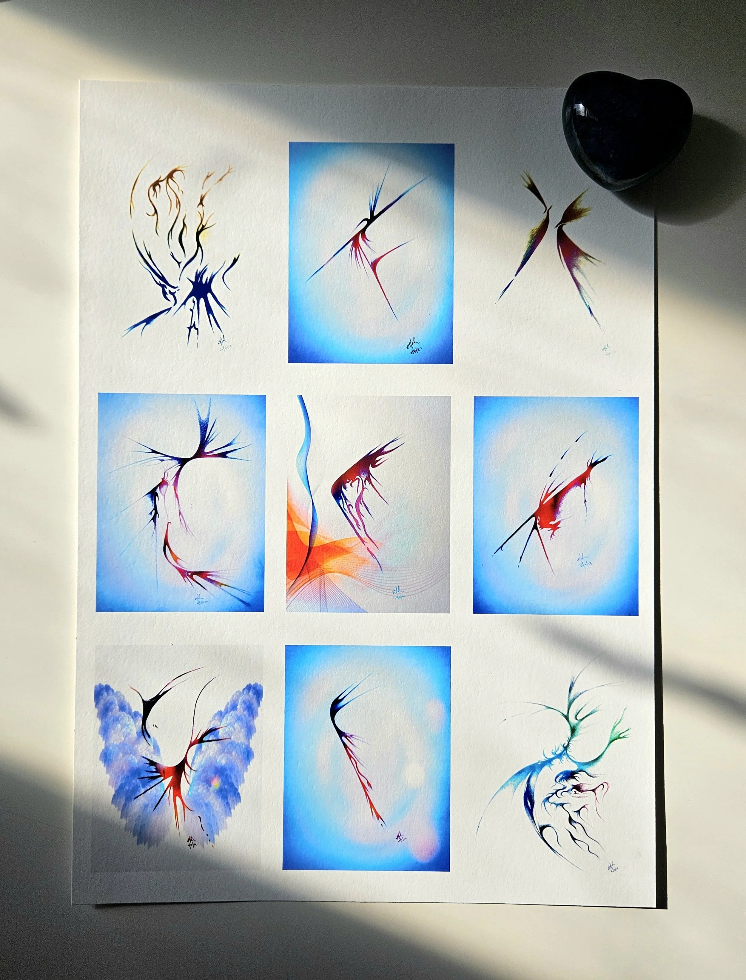 They emerged in the negative space to soothe my soul as a woman, bearing the scars of woman-ing. And the colours aligned with messages of healing and hope and the essence of light within them shone through in the digital possibilities.